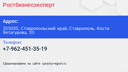 Ростбизнесэксперт по адресу 355035, Ставропольский край, Ставрополь, Коста Хетагурова, 10 в дальнейшем Организация, размещена в следующих категориях: