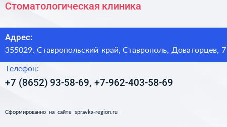 Стоматологическая клиника по адресу 355029, Ставропольский край, Ставрополь, Доваторцев, 7 в дальнейшем Организация, размещена в следующих категориях: