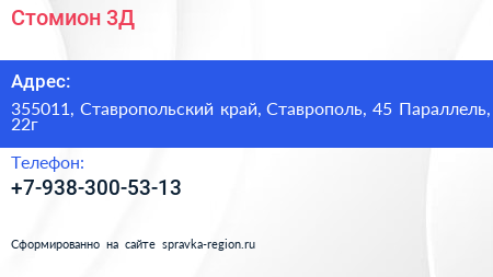 Стомион-3Д по адресу 355011, Ставропольский край, Ставрополь, 45 Параллель, 22г в дальнейшем Организация, размещена в следующих категориях: