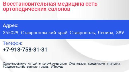 Восстановительная медицина, сеть ортопедических салонов по адресу 355029, Ставропольский край, Ставрополь, Ленина, 389 в дальнейшем Организация, размещена в следующих категориях: