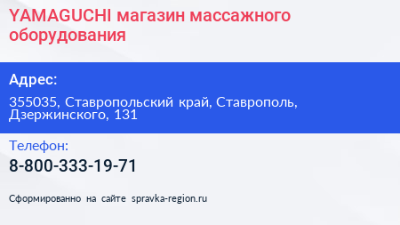 YAMAGUCHI, магазин массажного оборудования по адресу 355035, Ставропольский край, Ставрополь, Дзержинского, 131 в дальнейшем Организация, размещена в следующих категориях: