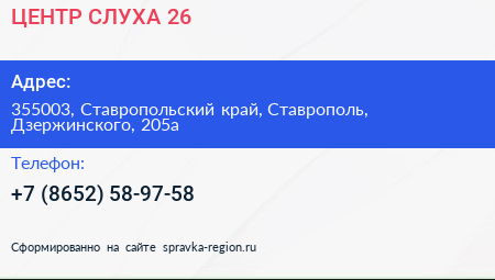ЦЕНТР СЛУХА 26 по адресу 355003, Ставропольский край, Ставрополь, Дзержинского, 205а в дальнейшем Организация, размещена в следующих категориях: