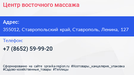 Центр восточного массажа по адресу 355012, Ставропольский край, Ставрополь, Ленина, 127 в дальнейшем Организация, размещена в следующих категориях: