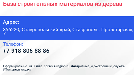 База строительных материалов из дерева по адресу 356220, Ставропольский край, Ставрополь, Пролетарская, 7 в дальнейшем Организация, размещена в следующих категориях: