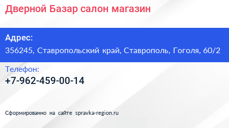 Дверной Базар, салон-магазин по адресу 356245, Ставропольский край, Ставрополь, Гоголя, 60/2 в дальнейшем Организация, размещена в следующих категориях: