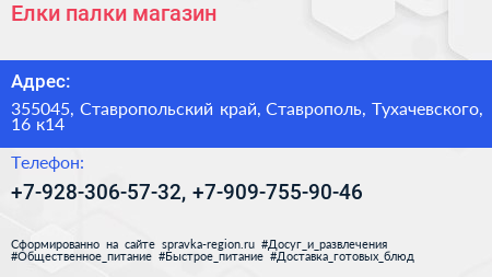 Елки-палки, магазин по адресу 355045, Ставропольский край, Ставрополь, Тухачевского, 16 к14 в дальнейшем Организация, размещена в следующих категориях: