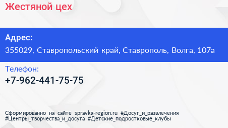 Жестяной цех по адресу 355029, Ставропольский край, Ставрополь, Волга, 107а в дальнейшем Организация, размещена в следующих категориях: