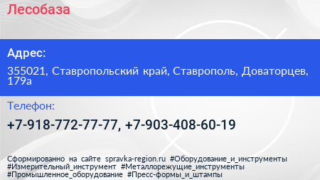 Лесобаза по адресу 355021, Ставропольский край, Ставрополь, Доваторцев, 179а в дальнейшем Организация, размещена в следующих категориях: