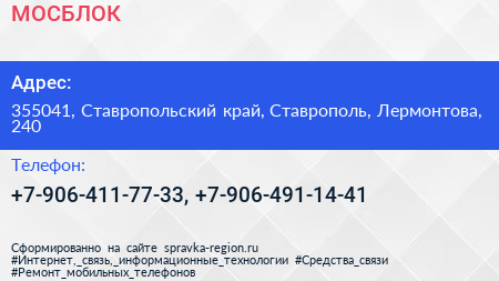 МОСБЛОК по адресу 355041, Ставропольский край, Ставрополь, Лермонтова, 240 в дальнейшем Организация, размещена в следующих категориях: