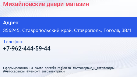 Михайловские двери, магазин по адресу 356245, Ставропольский край, Ставрополь, Гоголя, 38/1 в дальнейшем Организация, размещена в следующих категориях: