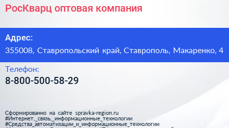 РосКварц, оптовая компания по адресу 355008, Ставропольский край, Ставрополь, Макаренко, 4 в дальнейшем Организация, размещена в следующих категориях: