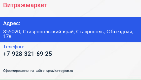 Витражмаркет по адресу 355020, Ставропольский край, Ставрополь, Объездная, 17в в дальнейшем Организация, размещена в следующих категориях: