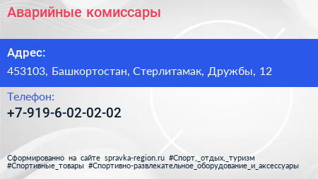 Аварийные комиссары по адресу 453103, Башкортостан, Стерлитамак, Дружбы, 12 в дальнейшем Организация, размещена в следующих категориях: