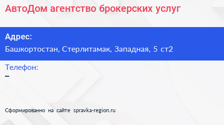 АвтоДом, агентство брокерских услуг по адресу Башкортостан, Стерлитамак, Западная, 5 ст2 в дальнейшем Организация, размещена в следующих категориях: