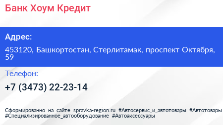 Банк Хоум Кредит по адресу 453120, Башкортостан, Стерлитамак, проспект Октября, 59 в дальнейшем Организация, размещена в следующих категориях:
