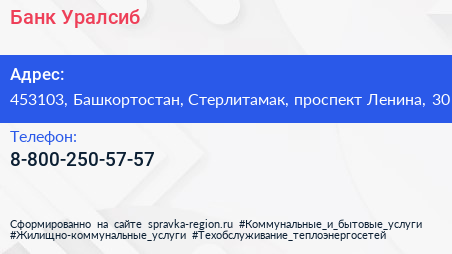 Банк Уралсиб по адресу 453103, Башкортостан, Стерлитамак, проспект Ленина, 30 в дальнейшем Организация, размещена в следующих категориях: