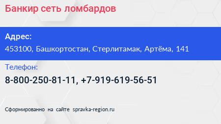 Банкир, сеть ломбардов по адресу 453100, Башкортостан, Стерлитамак, Артёма, 141 в дальнейшем Организация, размещена в следующих категориях: