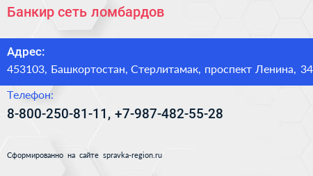 Банкир, сеть ломбардов по адресу 453103, Башкортостан, Стерлитамак, проспект Ленина, 34 в дальнейшем Организация, размещена в следующих категориях: