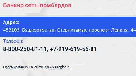 Банкир, сеть ломбардов по адресу 453103, Башкортостан, Стерлитамак, проспект Ленина, 44 в дальнейшем Организация, размещена в следующих категориях: