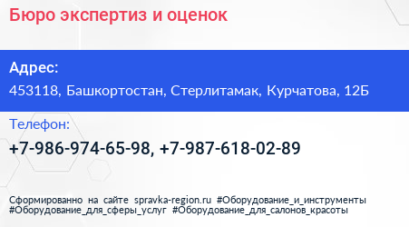 Бюро экспертиз и оценок по адресу 453118, Башкортостан, Стерлитамак, Курчатова, 12Б в дальнейшем Организация, размещена в следующих категориях: