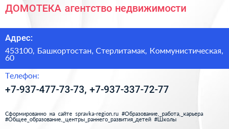 ДОМОТЕКА, агентство недвижимости по адресу 453100, Башкортостан, Стерлитамак, Коммунистическая, 60 в дальнейшем Организация, размещена в следующих категориях: