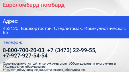 Евроломбард, ломбард по адресу 453120, Башкортостан, Стерлитамак, Коммунистическая, 85 в дальнейшем Организация, размещена в следующих категориях: