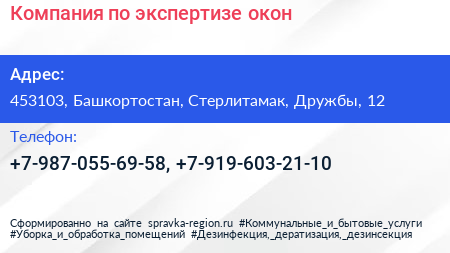 Компания по экспертизе окон по адресу 453103, Башкортостан, Стерлитамак, Дружбы, 12 в дальнейшем Организация, размещена в следующих категориях: