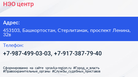 НЭО, центр по адресу 453103, Башкортостан, Стерлитамак, проспект Ленина, 32в в дальнейшем Организация, размещена в следующих категориях: