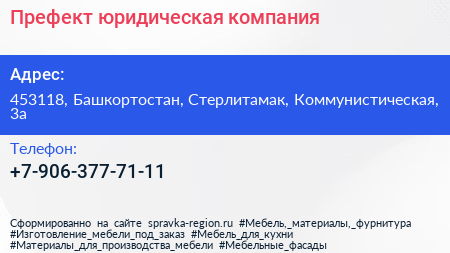 Префект, юридическая компания по адресу 453118, Башкортостан, Стерлитамак, Коммунистическая, 3а в дальнейшем Организация, размещена в следующих категориях: