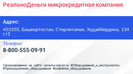 РеальноДеньги, микрокредитная компания по адресу 453103, Башкортостан, Стерлитамак, Худайбердина, 134 ст1 в дальнейшем Организация, размещена в следующих категориях: