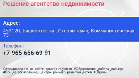 Решение, агентство недвижимости по адресу 453120, Башкортостан, Стерлитамак, Коммунистическая, 73 в дальнейшем Организация, размещена в следующих категориях: