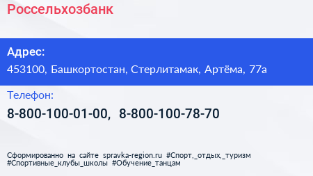 Россельхозбанк по адресу 453100, Башкортостан, Стерлитамак, Артёма, 77а в дальнейшем Организация, размещена в следующих категориях: