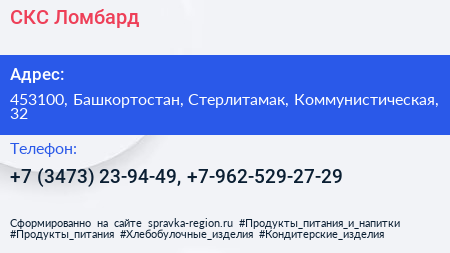 СКС Ломбард по адресу 453100, Башкортостан, Стерлитамак, Коммунистическая, 32 в дальнейшем Организация, размещена в следующих категориях: