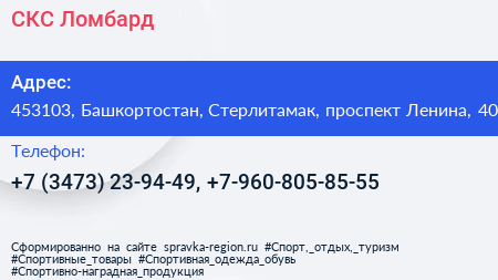 СКС Ломбард по адресу 453103, Башкортостан, Стерлитамак, проспект Ленина, 40 в дальнейшем Организация, размещена в следующих категориях:
