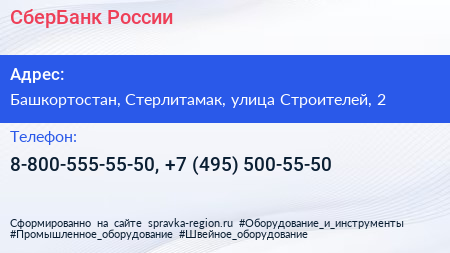СберБанк России по адресу Башкортостан, Стерлитамак, улица Строителей, 2 в дальнейшем Организация, размещена в следующих категориях: