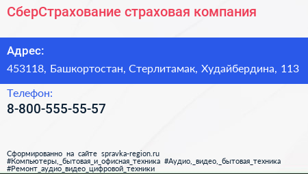 СберСтрахование, страховая компания по адресу 453118, Башкортостан, Стерлитамак, Худайбердина, 113 в дальнейшем Организация, размещена в следующих категориях: