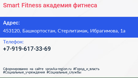 Smart Fitness, академия фитнеса по адресу 453120, Башкортостан, Стерлитамак, Ибрагимова, 1а в дальнейшем Организация, размещена в следующих категориях: