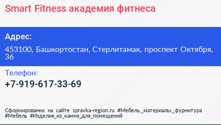 Smart Fitness, академия фитнеса по адресу 453100, Башкортостан, Стерлитамак, проспект Октября, 36 в дальнейшем Организация, размещена в следующих категориях: