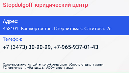 Stopdolgoff, юридический центр по адресу 453101, Башкортостан, Стерлитамак, Сагитова, 2е в дальнейшем Организация, размещена в следующих категориях: