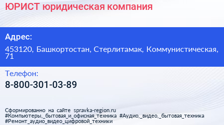 ЮРИСТ, юридическая компания по адресу 453120, Башкортостан, Стерлитамак, Коммунистическая, 71 в дальнейшем Организация, размещена в следующих категориях: