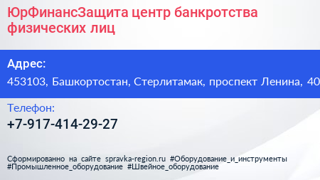 ЮрФинансЗащита, центр банкротства физических лиц по адресу 453103, Башкортостан, Стерлитамак, проспект Ленина, 40 в дальнейшем Организация, размещена в следующих категориях: