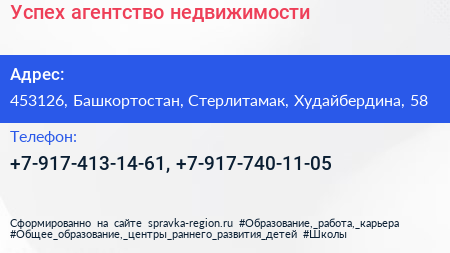 Успех, агентство недвижимости по адресу 453126, Башкортостан, Стерлитамак, Худайбердина, 58 в дальнейшем Организация, размещена в следующих категориях:
