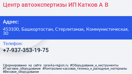 Центр автоэкспертизы, ИП Катков А.В. по адресу 453100, Башкортостан, Стерлитамак, Коммунистическая, 30 в дальнейшем Организация, размещена в следующих категориях: