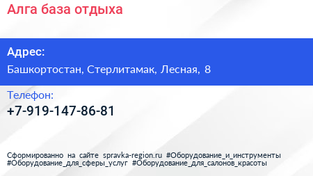 Алга, база отдыха по адресу Башкортостан, Стерлитамак, Лесная, 8 в дальнейшем Организация, размещена в следующих категориях: