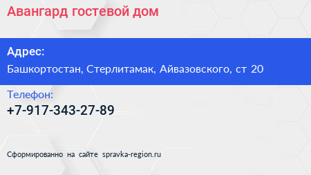 Авангард, гостевой дом по адресу Башкортостан, Стерлитамак, Айвазовского, ст 20 в дальнейшем Организация, размещена в следующих категориях: