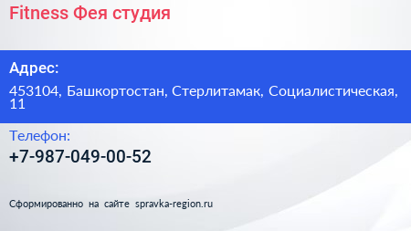 Fitness-Фея, студия по адресу 453104, Башкортостан, Стерлитамак, Социалистическая, 11 в дальнейшем Организация, размещена в следующих категориях: