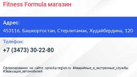 Fitness Formula, магазин по адресу 453116, Башкортостан, Стерлитамак, Худайбердина, 120 в дальнейшем Организация, размещена в следующих категориях: