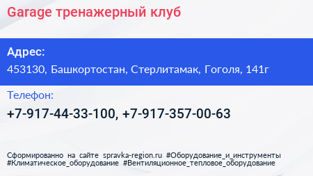 Garage, тренажерный клуб по адресу 453130, Башкортостан, Стерлитамак, Гоголя, 141г в дальнейшем Организация, размещена в следующих категориях: