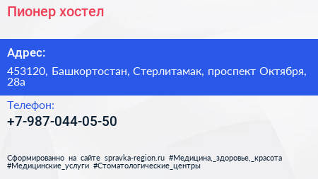 Пионер, хостел по адресу 453120, Башкортостан, Стерлитамак, проспект Октября, 28а в дальнейшем Организация, размещена в следующих категориях: