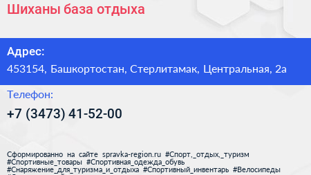Шиханы, база отдыха по адресу 453154, Башкортостан, Стерлитамак, Центральная, 2а в дальнейшем Организация, размещена в следующих категориях: